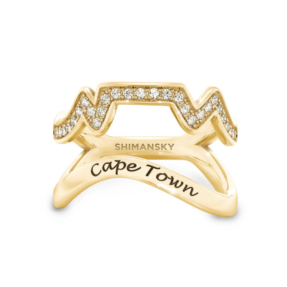 Comemore sua conexão com a Cidade do Cabo com o Shimansky Table Mountain Ring. Projetado para incorporar a essência deste marco mundialmente famoso, este anel requintado permite que você leve um pedaço de sua magia para onde quer que vá.